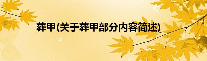 导读 大家好,今天小方来说说一篇关于葬甲,关于葬甲部分内容简述的文章,那么现在就为大家来简单介绍下,希望对各位小伙伴们有所帮助。