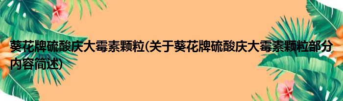 葵花牌硫酸庆大霉素颗粒(关于葵花牌硫酸庆大霉素颗粒部分内容简述)