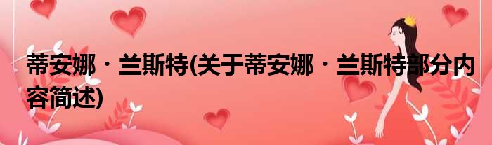 导读 大家好,今天小方来说说一篇关于蒂安娜・兰斯特,关于蒂安娜・兰斯特部分内容简述的文章,那么现在就为大家来简单介绍下,希望对各位小伙伴