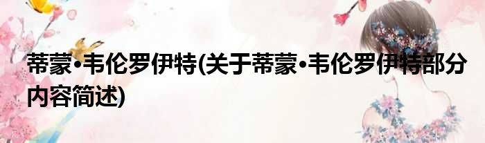 蒂蒙·韦伦罗伊特(关于蒂蒙·韦伦罗伊特部分内容简述)