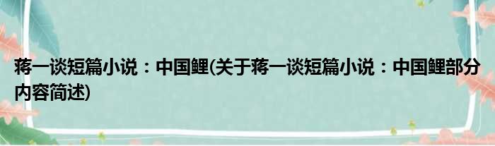 导读 大家好,今天小方来说说一篇关于蒋一谈短篇小说:中国鲤,关于蒋一谈短篇小说:中国鲤部分内容简述的文章,那么现在就为大家来简单介绍下,