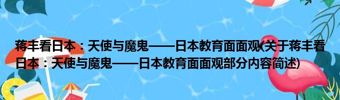 导读 大家好,今天小方来说说一篇关于蒋丰看日本:天使与魔鬼——日本教育面面观,关于蒋丰看日本:天使与魔鬼——日本教育面面观部分内容简述的