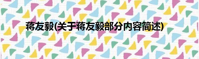 导读 大家好,今天小方来说说一篇关于蒋友毅,关于蒋友毅部分内容简述的文章,那么现在就为大家来简单介绍下,希望对各位小伙伴们有所帮助。