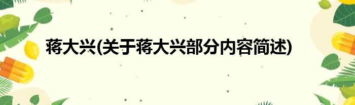 导读 大家好,今天小方来说说一篇关于蒋大兴,关于蒋大兴部分内容简述的文章,那么现在就为大家来简单介绍下,希望对各位小伙伴们有所帮助。