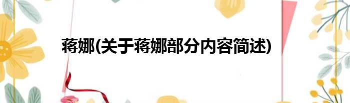 导读 大家好,今天小方来说说一篇关于蒋娜,关于蒋娜部分内容简述的文章,那么现在就为大家来简单介绍下,希望对各位小伙伴们有所帮助。