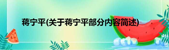 大家好,今天小方来说说一篇关于蒋宁平,关于蒋宁平部分内容简述的文章,那么现在就为大家来简单介绍下,希望对各位小伙伴们有所帮助。