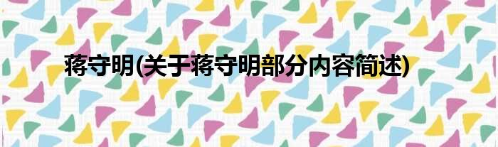 导读 大家好,今天小方来说说一篇关于蒋守明,关于蒋守明部分内容简述的文章,那么现在就为大家来简单介绍下,希望对各位小伙伴们有所帮助。