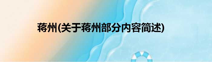 蒋州(关于蒋州部分内容简述)