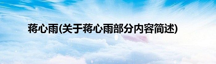 导读 大家好,今天小方来说说一篇关于蒋心雨,关于蒋心雨部分内容简述的文章,那么现在就为大家来简单介绍下,希望对各位小伙伴们有所帮助。