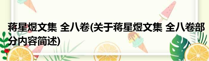 蒋星煜文集 全八卷(关于蒋星煜文集 全八卷部分内容简述)