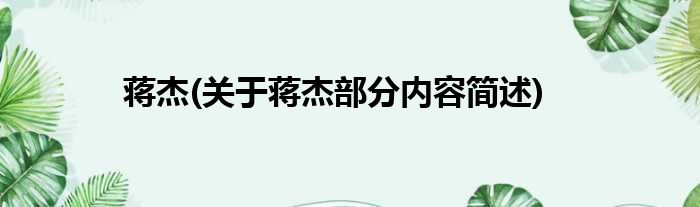 导读 大家好,今天小方来说说一篇关于蒋杰,关于蒋杰部分内容简述的文章,那么现在就为大家来简单介绍下,希望对各位小伙伴们有所帮助。