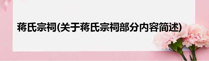 蒋氏宗祠(关于蒋氏宗祠部分内容简述)