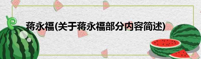 大家好,今天小方来说说一篇关于蒋永福,关于蒋永福部分内容简述的文章,那么现在就为大家来简单介绍下,希望对各位小伙伴们有所帮助。