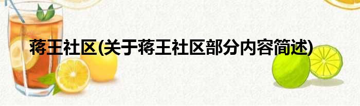 大家好,今天小方来说说一篇关于蒋王社区,关于蒋王社区部分内容简述的文章,那么现在就为大家来简单介绍下,希望对各位小伙伴们有所帮助。