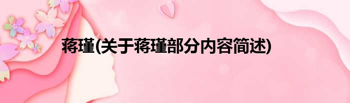导读 大家好,今天小方来说说一篇关于蒋瑾,关于蒋瑾部分内容简述的文章,那么现在就为大家来简单介绍下,希望对各位小伙伴们有所帮助。