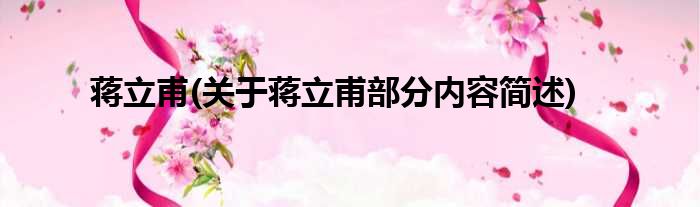 蒋立甫(关于蒋立甫部分内容简述)
