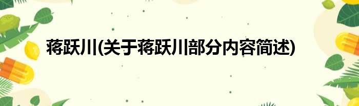导读 大家好,今天小方来说说一篇关于蒋跃川,关于蒋跃川部分内容简述的文章,那么现在就为大家来简单介绍下,希望对各位小伙伴们有所帮助。
