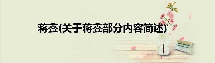 导读 大家好,今天小方来说说一篇关于蒋鑫,关于蒋鑫部分内容简述的文章,那么现在就为大家来简单介绍下,希望对各位小伙伴们有所帮助。
