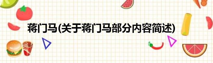 大家好,今天小方来说说一篇关于蒋门马,关于蒋门马部分内容简述的文章,那么现在就为大家来简单介绍下,希望对各位小伙伴们有所帮助。