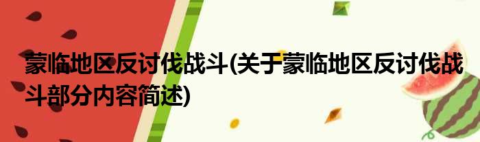蒙临地区反讨伐战斗(关于蒙临地区反讨伐战斗部分内容简述)