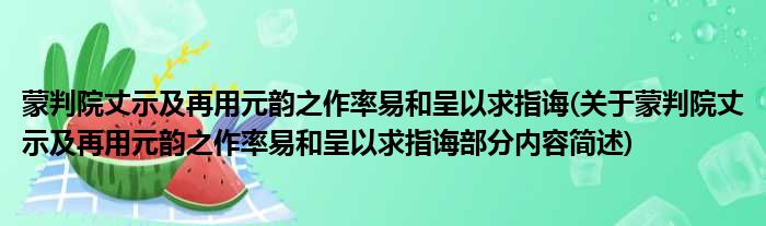 蒙判院丈示及再用元韵之作率易和呈以求指诲(关于蒙判院丈示及再用元韵之作率易和呈以求指诲部分内容简述)