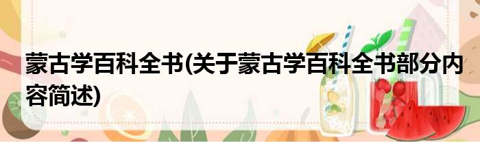 导读 大家好,今天小方来说说一篇关于蒙古学百科全书,关于蒙古学百科全书部分内容简述的文章,那么现在就为大家来简单介绍下,希望对各位小伙伴