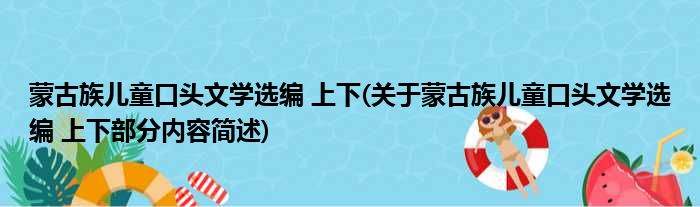 蒙古族儿童口头文学选编 上下(关于蒙古族儿童口头文学选编 上下部分内容简述)