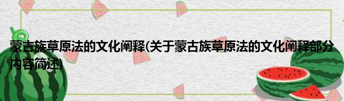 蒙古族草原法的文化阐释(关于蒙古族草原法的文化阐释部分内容简述)