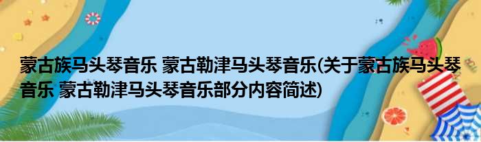 蒙古族马头琴音乐 蒙古勒津马头琴音乐(关于蒙古族马头琴音乐 蒙古勒津马头琴音乐部分内容简述)