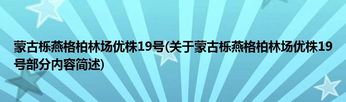 蒙古栎燕格柏林场优株19号(关于蒙古栎燕格柏林场优株19号部分内容简述)