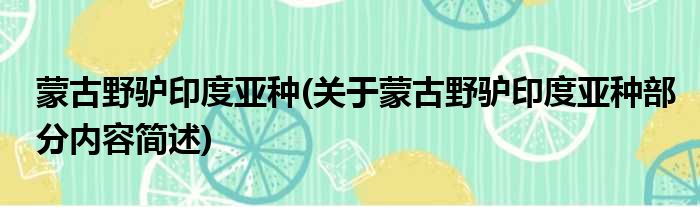 蒙古野驴印度亚种(关于蒙古野驴印度亚种部分内容简述)