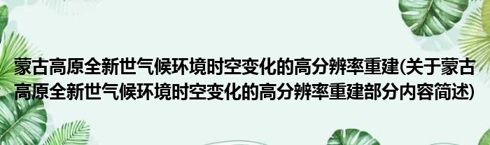 大家好,今天小方来说说一篇关于蒙古高原全新世气候环境时空变化的高分辨率重建,关于蒙古高原全新世气候环境时空变化的高分辨率重建部分内容简述的文章,那么现在就为大家来简单介绍下,希望对各位小伙伴们有所帮助。