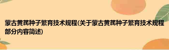 蒙古黄芪种子繁育技术规程(关于蒙古黄芪种子繁育技术规程部分内容简述)