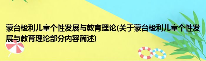 导读 大家好,今天小方来说说一篇关于蒙台梭利儿童个性发展与教育理论,关于蒙台梭利儿童个性发展与教育理论部分内容简述的文章,那么现在就为大