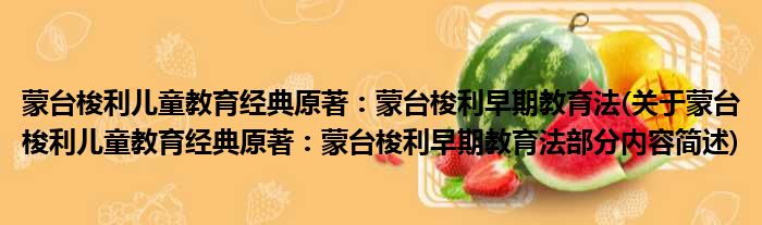 导读 大家好,今天小方来说说一篇关于蒙台梭利儿童教育经典原著:蒙台梭利早期教育法,关于蒙台梭利儿童教育经典原著:蒙台梭利早期教育法部分内