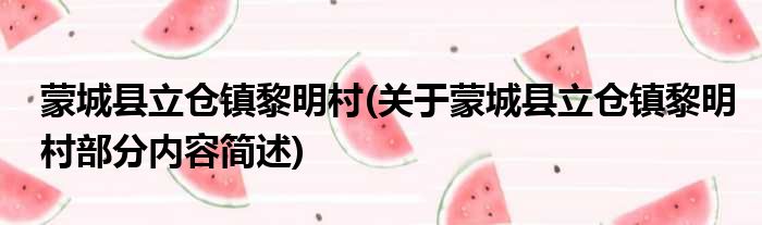 蒙城县立仓镇黎明村(关于蒙城县立仓镇黎明村部分内容简述)