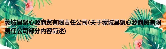 蒙城县聚心源商贸有限责任公司(关于蒙城县聚心源商贸有限责任公司部分内容简述)