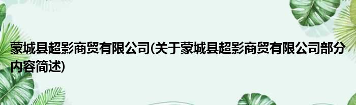 蒙城县超影商贸有限公司(关于蒙城县超影商贸有限公司部分内容简述)