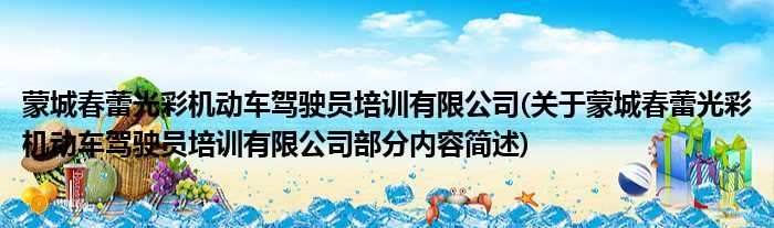蒙城春蕾光彩机动车驾驶员培训有限公司(关于蒙城春蕾光彩机动车驾驶员培训有限公司部分内容简述)