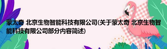 蒙太奇 北京生物智能科技有限公司(关于蒙太奇 北京生物智能科技有限公司部分内容简述)
