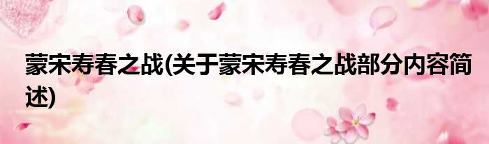 蒙宋寿春之战(关于蒙宋寿春之战部分内容简述)