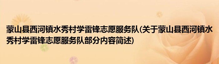 蒙山县西河镇水秀村学雷锋志愿服务队(关于蒙山县西河镇水秀村学雷锋志愿服务队部分内容简述)
