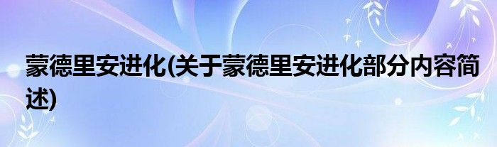 蒙德里安进化(关于蒙德里安进化部分内容简述)
