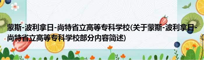 蒙斯-波利拿日-尚特省立高等专科学校(关于蒙斯-波利拿日-尚特省立高等专科学校部分内容简述)