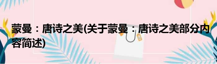 蒙曼:唐诗之美(关于蒙曼:唐诗之美部分内容简述)