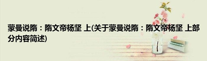 大家好,今天小方来说说一篇关于蒙曼说隋:隋文帝杨坚 上,关于蒙曼说隋:隋文帝杨坚 上部分内容简述的文章,那么现在就为大家来简单介绍下,希望对各位小伙伴们有所帮助。