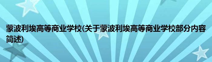蒙波利埃高等商业学校(关于蒙波利埃高等商业学校部分内容简述)