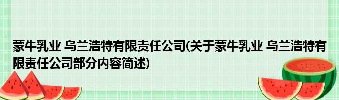 蒙牛乳业 乌兰浩特有限责任公司(关于蒙牛乳业 乌兰浩特有限责任公司部分内容简述)