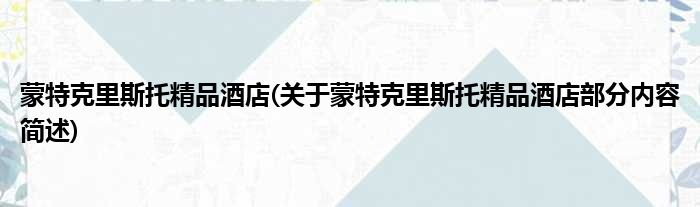 蒙特克里斯托精品酒店(关于蒙特克里斯托精品酒店部分内容简述)