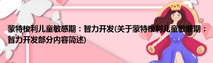 蒙特梭利儿童敏感期:智力开发(关于蒙特梭利儿童敏感期:智力开发部分内容简述)